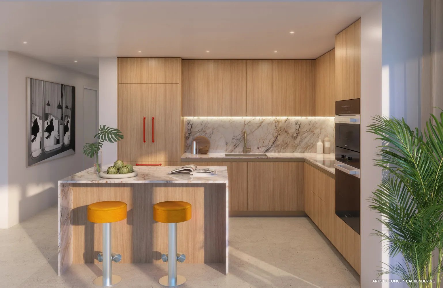 - The Kitchens feature Italian-crafted Italkraft cabinetry, along with integrated paneled refrigerators for ample cold storage.